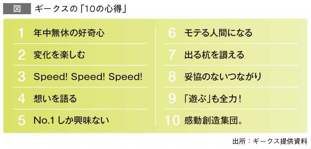 同社の「感謝と称賛」の土壌となるのが価値基準「10の心得」であり、その象徴が「ギークスアワード」だ。