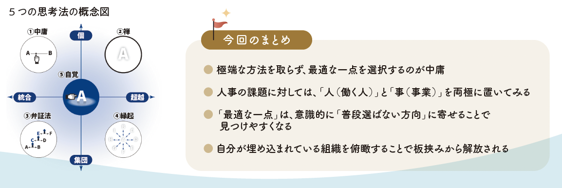 不透明で正解のない時代、二者択一を迫られ、悩むことも多い人事パーソン。そこで今回、取り上げるのはアリストテレスが唱えた「中庸」だ。「極端に偏らず、過不足なく調和がとれていること」を指す概念である。時を超えて伝わる“究極の経験則”を意思決定に結びつけるには―。